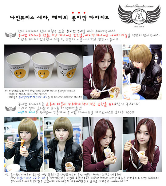 In Korea, the lifestyle of k-pop idols is not all that glamorous. Like any celebrity, female Korean idols are expected to maintain a slim figure. To get the results of an amazing figure, female idols go through extreme diets. I once came across a news article about the Korean girl Group Nine Muses that revealed the girl groups strict diet. In order to lose weight and look thin, the member shared that they were doing a “cup diet” where they only eat the proportion of a very small paper cup. The members explain that you have to fill the cup only up to where the cup ends at the top and to fill it with brown rice, fruits, and vegetables. The members share that although the portion is small, they eat it three times throughout the day. One member of Nine Muse Ryu Sera revealed that while she was training under another record label company, she was on an even more strict diet that the paper cup diet. Ryu shared that she lost around 20kg (44lbs) on this tough diet.